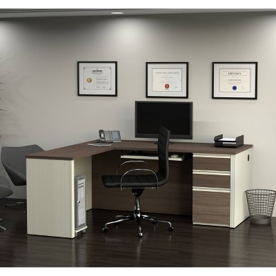 This computer desk has 2 storage drawers and 1 hanging file cabinet that is good for you to organize your materials in your office.